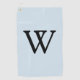 Stylish monogrammed golf towel. Personalize with your initial shown in black text on a light blue gray background. Fun for anyone who loves a game of golf at the golf course or golf range. Click Customize to change background color. Designed by TamiraZDesigns.