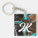 Monogrammed Blue, Brown and Black Abstract Art Keychain