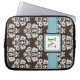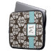 Monogrammed Blue Brown Damask Laptop Sleeve Bag