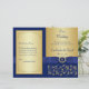Monogrammed Blue, Gold Floral Wedding Program