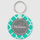 Monogrammed Blue & Gray Quatrefoil Keychain