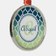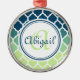 Monogrammed Blue Green Moroccan Lattice Pattern Metal Ornament