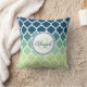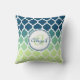 Monogrammed Blue Green Moroccan Lattice Pattern Throw Pillow