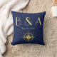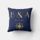 Monogrammed blue nautical wedding pillows with gold compass and customizable text - you can change wedding date and add initials