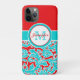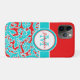 This modern, personalized, turquoise blue, red, and white floral damask pattern Case-Mate Barely There™ iPhone 11 Case has spots for you to add your name, initials, monogram, or other text. If you need help customizing this, please email niteowlstudio@gmail.com.