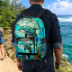 Monogrammed Blue Teal Dolphin Stain Glass look Printed Backpack