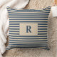 Monogrammed Blue/Vanilla Stripes Throw Pillow