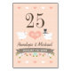 Monogram this table number card by adding the initials of the bride and groom on the heart of this sweet love birds theme wedding table number card with two white doves, one donned in a gray groom's top hat and another wears a floral bridal veil. White blossoms on tree branches, coral colored hearts, pink and brown flowers and a mint rose and tulip look laurel wreath sits on a PALE CORAL PEACHY PINK BLUSH background. Artwork © Chrissy H. Studios, LLC. All Rights Reserved.