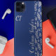 Add a touch of nature-inspired elegance to your tech with this Monogrammed Blush Pink Leaf Pattern on Navy Blue iPhone Case.