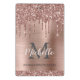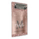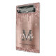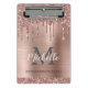 Modern, girly rose gold glitter drips personalized name and monogrammed mini clipboard. This design features blush pink rose gold glitter sparkle drips on faux pink brushed metal background with monogram initial and name text template. Perfect girly personalized gift for back to school, professional work, home office. Please note, this design is a printed photo effect with no real glitter.
