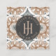 An earthy boho style monogrammed logo geometric pattern background business card design with muted brown and charcoal gray abstract shapes. A dynamic decorative typographic monogram.