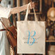 Monogrammed Bridesmaid Initial Aqua Blue Tote Bag