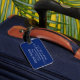 blue square monogrammed red sea themed luggage tag with lobster pattern