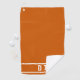 This is a very fancy golf towel that even has its own monograms on it in a fiery burnt orange color. Moody and retro, like the 1970s.Orange is the color of the Sun and Leo's favorite.