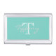 Monogrammed Business Card case with Famous Blue, name in silver and white classic initial for the ladies ; girly monogram initials womens gift wedding party bridesmaid maid of honor minimalism art deco vintage retro elegant lawyer, attorney, judge, salesperson, stylist, stock broker, art consultant, retail, manager, ceo, employee, gift, analyst, psychiatrist, artist, musician, performer, private, owner, vice president, executive, corporate, technician, computer tech