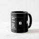 An elegant, humorous, black & white chess design captioned with: Chess + coffee = checkmate world! It is also monogrammed with recipient’s initials (J B). Easily personalized and edited.