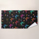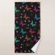 Monogram towel set. Designed with an elegant pattern with a graphic illustration of fluttering butterflies in many bright colors, contrasting very nicely on the black background. Whimsical florals, sprigs and leaves add a bit of charm. A black frame with a gold colored border layered over top with your personalized monogram initial inside.