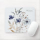 Monogrammed Chic Pretty Watercolor Blue Flower Mouse Pad