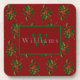Monogrammed Christmas Holly On Red Beverage Coaster
