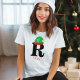 Have a look at a white version of a cool, funny, personalizable piece of your Holiday Season's wardrobe: a Monogrammed Family Christmas Matching T-shirt. This charming tee is an elegant design of your name initial decorated with a cute, snowy elf hat, creating a whimsical and merry ensemble perfect for the season's celebrations. The colors, both in fonts, and in the elf hat, are fully editable.
