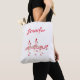 Monogrammed dancing flamingos Christmas tote bag. Reversible to a plain pink background.