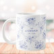 Monogrammed Classic Blue Flowers Floral Pattern Giant Coffee Mug