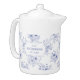 Monogrammed Classic Blue Flowers Floral Pattern Teapot