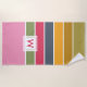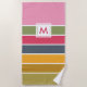 Monogrammed beach towel with bold striped design. The template is ready for you to add your first name initial or your family initial. This happy and cheerful design has a color palette in shades of pink, green blue and yellow. A charming and timeless stripe pattern for the garden, pool or beach. Please browse my store for coordinating bags and outdoor pillows.