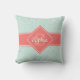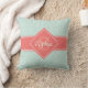 Monogrammed Coral and Mint Diamond Pattern Throw Pillow