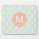 Monogrammed Coral Mint Diamonds Ikat Pattern Mouse Pad