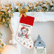 This unique personalized Christmas stocking with a cute penguin in a red Santa hat is decorated with snowflakes and ornaments and designed on a white background. The template makes it easy to type any name.