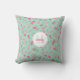 Monogrammed Dainty Pink Flowers On Teal Throw Pillow