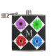 Cute colorful daisy and sparkling black rhomboid. Optional monogram