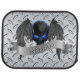 These monogrammed diamond plate look skull car mats can be customized with your own name and match our license plate with the blue skull design.