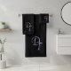This luxurious bath towel set features a rich eggplant color (#614051) base, beautifully accented with pale purple monogrammed letters in a simple yet elegant font. Easily personalize it with the initials of your choice, making it a thoughtful option for wedding gifts, housewarming presents, or simply as a stylish addition to your own bathroom. Designed by Alma Wad, this towel set combines sophistication with practicality, perfect for any occasion.