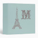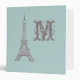 The Eiffel Tower decorates this dusty aqua binder. Personalize this binder by changing the monogram initial to suit your needs. The design is from an original illustration.