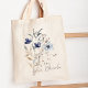 Carry your essentials in style with this monogrammed tote bag, featuring an elegant blue wildflower bouquet. Its floral, botanical watercolor design and delicate script make it a good accessory for nature lovers.