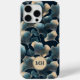 Monogrammed Elegant Blue Ginkgo Floral Pattern Case-Mate iPhone Case