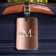 Monogrammed faux rose gold shiny metallic texture luggage tag.