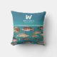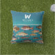 Monogrammed Fish Under Blue Ocean Beach House Outdoor Pillow