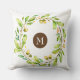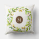 Monogrammed Floral Wreath Throw Pillow