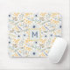 Monogrammed Flowers Yellow Blue Botanical Pattern Mouse Pad