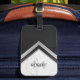 Monogrammed Geometric Chevron Black Silver Marble Luggage Tag