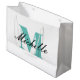 Monogrammed gift bag with fancy script typography. Elegant large gift bags for chic presents and party favors. Luxury template design with teal blue and black colors on white background. Great for Birthday, Holidays, weddings and more. Personalise with your own name. Big and small sizes available.