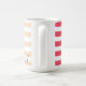 This cute, girly, monogrammed mug features a modern striped pattern in pink and peach gradient and a customizable monogram in a pretty grey script font.