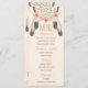 A gorgeous blush, peachy pink and cream floral dreamcatcher menu card with roses, carnations and feathers hanging from an native American style dream catcher with burnished gold heart shaped beads. It can monogrammed with the initials and monogram of the bride and groom on the heart shaped charm hanging from a chain on the back of the card. A parchment look background and faux glitter look arrow with a heart shaped arrow head completes this pretty, tribal and boho inspired design. Perfect for a dream catcher bohemian themed wedding, engagement party, bridal or couples shower or anniversary celebration. Design and/or artwork © Chrissy H. Studios, LLC. All rights reserved.
