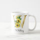 Monogrammed Gold Sunflower Floral Initial W Coffee Mug