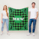 Customize this sherpa fleece throw with your initials. Perfect to keep you and your golf buddy warm on a chilly morning on the golf course. Bright green and black plaid print fills the background, with small golfer images in each corner.