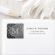 Cool cute geometric trendy black, gray and white zigzag chevron pattern with gray nameplate for your custom monogram initial letter. Chic monogrammed modern address labels.