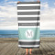 Monogrammed Gray and Mint Stripes Bath Towel